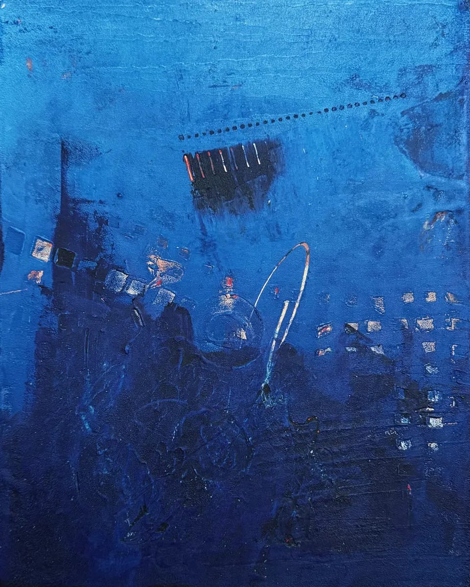 Lots of blues from cold, dark blue to bright summer sky blue.