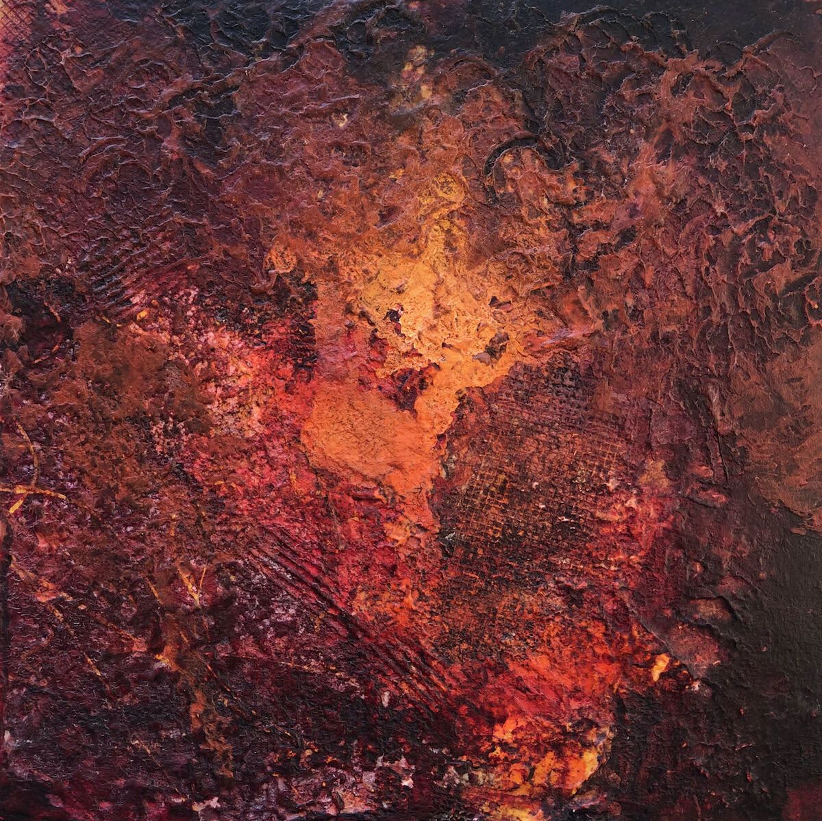 He Gave Her a Ring of Fire, She Said Yes, 12"x12"x2", Ink on Cold Wax Medium