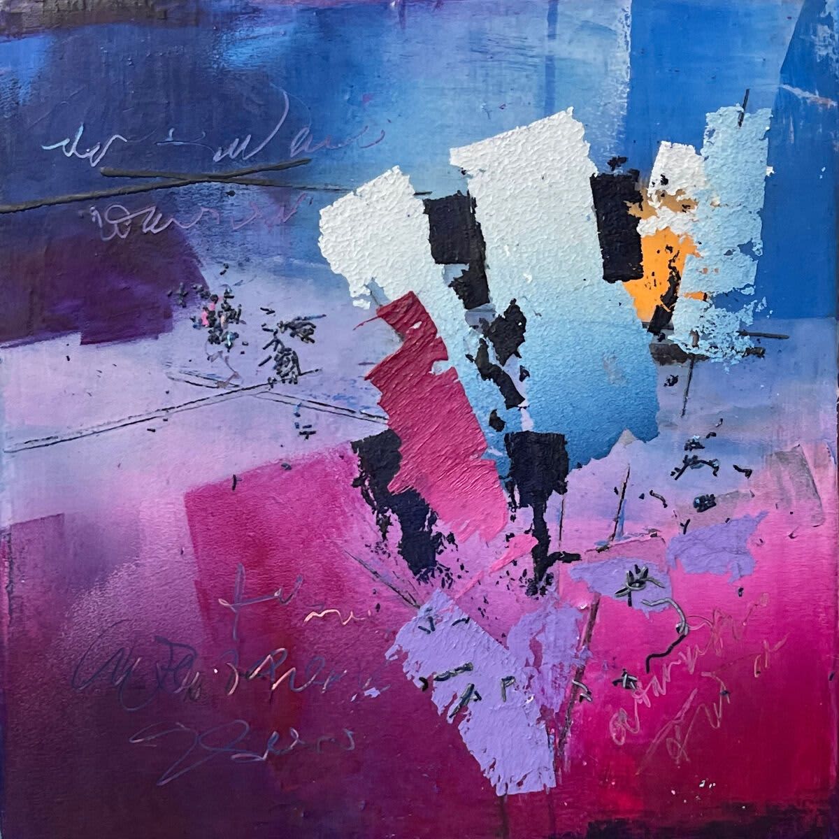 RED, 8"X10" canvas, textured pale pink bubbles against a deep red background