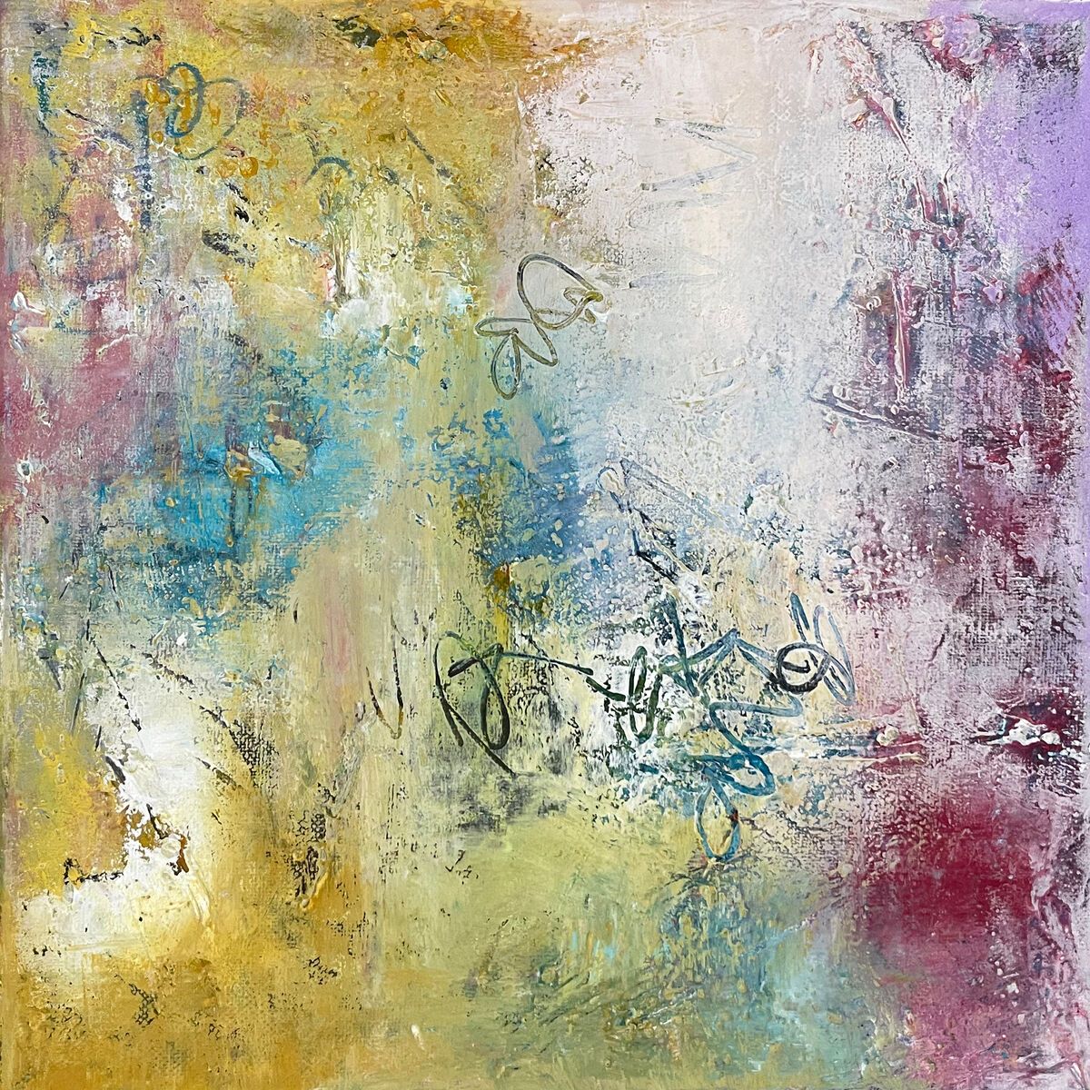 Light lavender and pink, 6"x6" canvas, oil cold wax